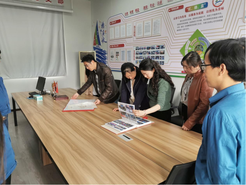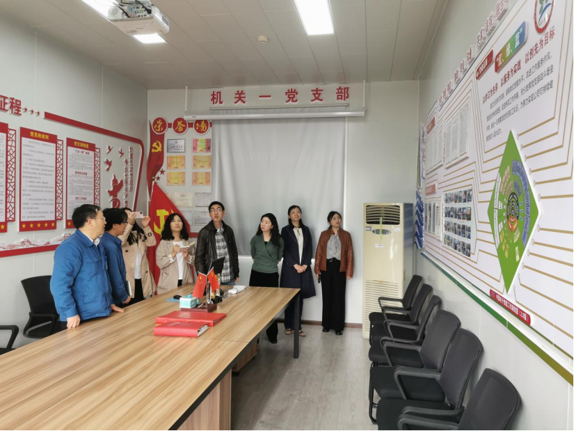 一行人员,并详细介绍了公司目前的发展规模、现状以及未来的规划,同时重点学习参访了机关一支部的党建品牌活动室。