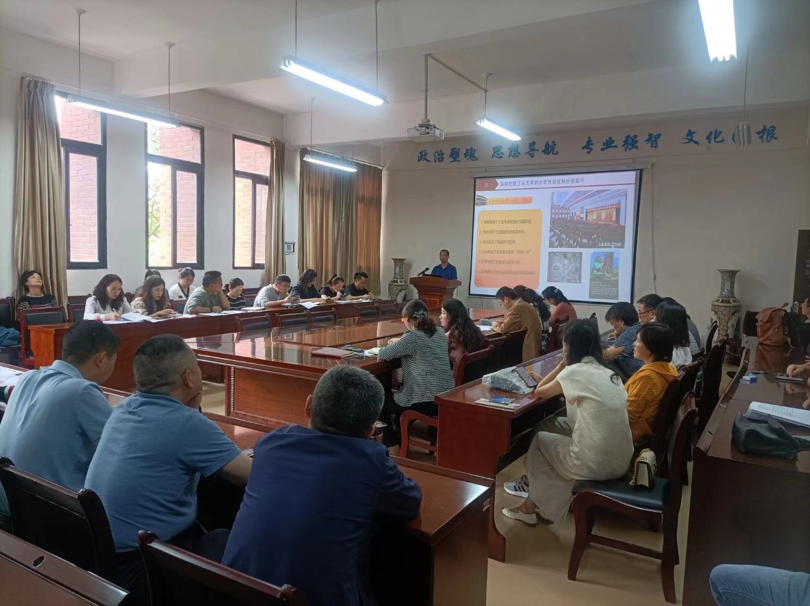 聂永刚从深刻把握省第十三次党代会的重大意义,深刻把握衷心拥护“两个确立”、忠诚践行“两个维护”是本次大会的主旨灵魂,深刻把握过去五年的历史性成就和经验启示,深刻把握我省今后五年工作的总体要求、主战略、主定位和奋斗目标,深刻把握今后五年贵州高质量发展的重点任务,深刻把握实现未来奋斗目标的政治保证,深刻把握学习贯彻落实大会精神提出的要求等七个方面,对省第十三次党代会精神进行了深入系统宣讲。勉励师生认真学习领会省第十三次党代会精神,更加紧密地团结在以习近平同志为核心的党中央周围,高举伟大旗帜、牢记领袖嘱托,用奋斗书写精彩答卷,用实干开创美好未来,奋力谱写多彩贵州现代化建设新篇章,以优异成绩迎接党的二十大胜利召开!