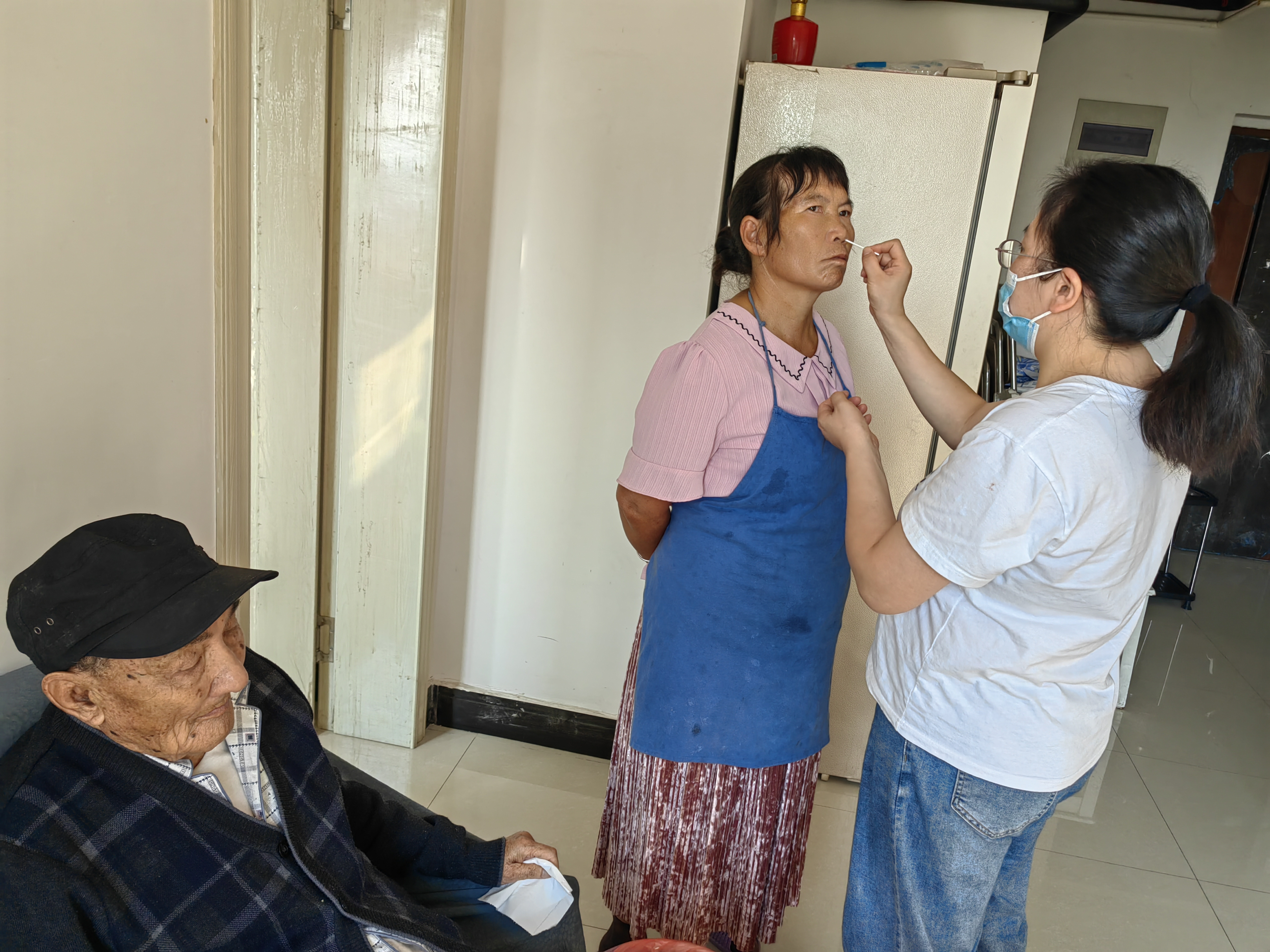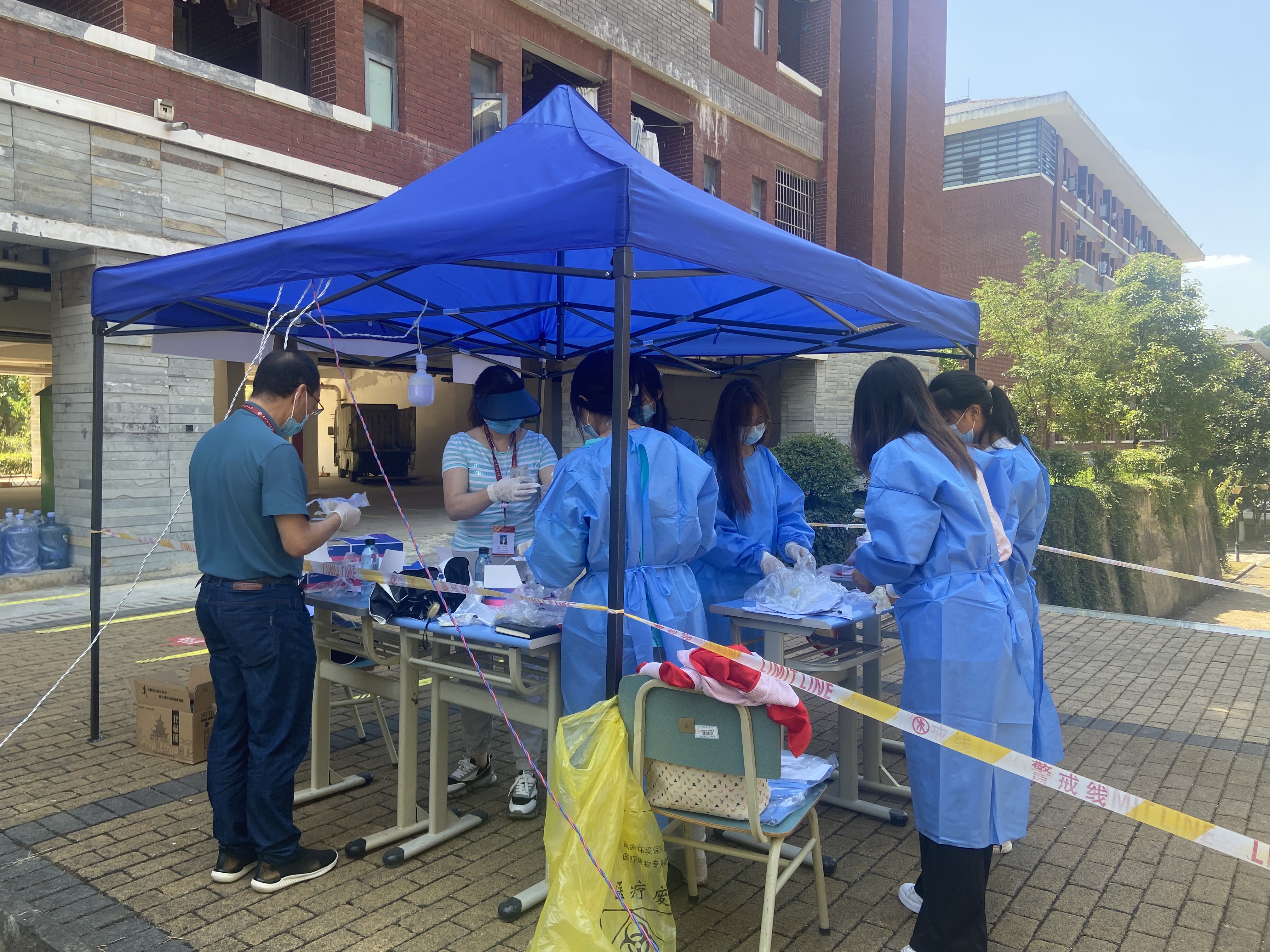 教师也纷纷申请出战,加入我校抗原检测志愿者队伍,到点到户上门送检测物资并帮助教职工和家属做抗原检测。