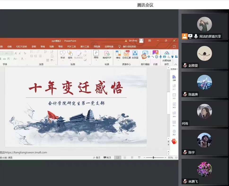 研究生第一党支部开展了“迎接二十大,接龙抄党章”“喜迎二十大,书香润会计——网络读书会”“迎接二十大,感悟这十年”的谈心谈话活动等系列实践活动,教育引导广大研究生党员不忘初心跟党走,进一步激发深刻的爱国爱党情怀。
