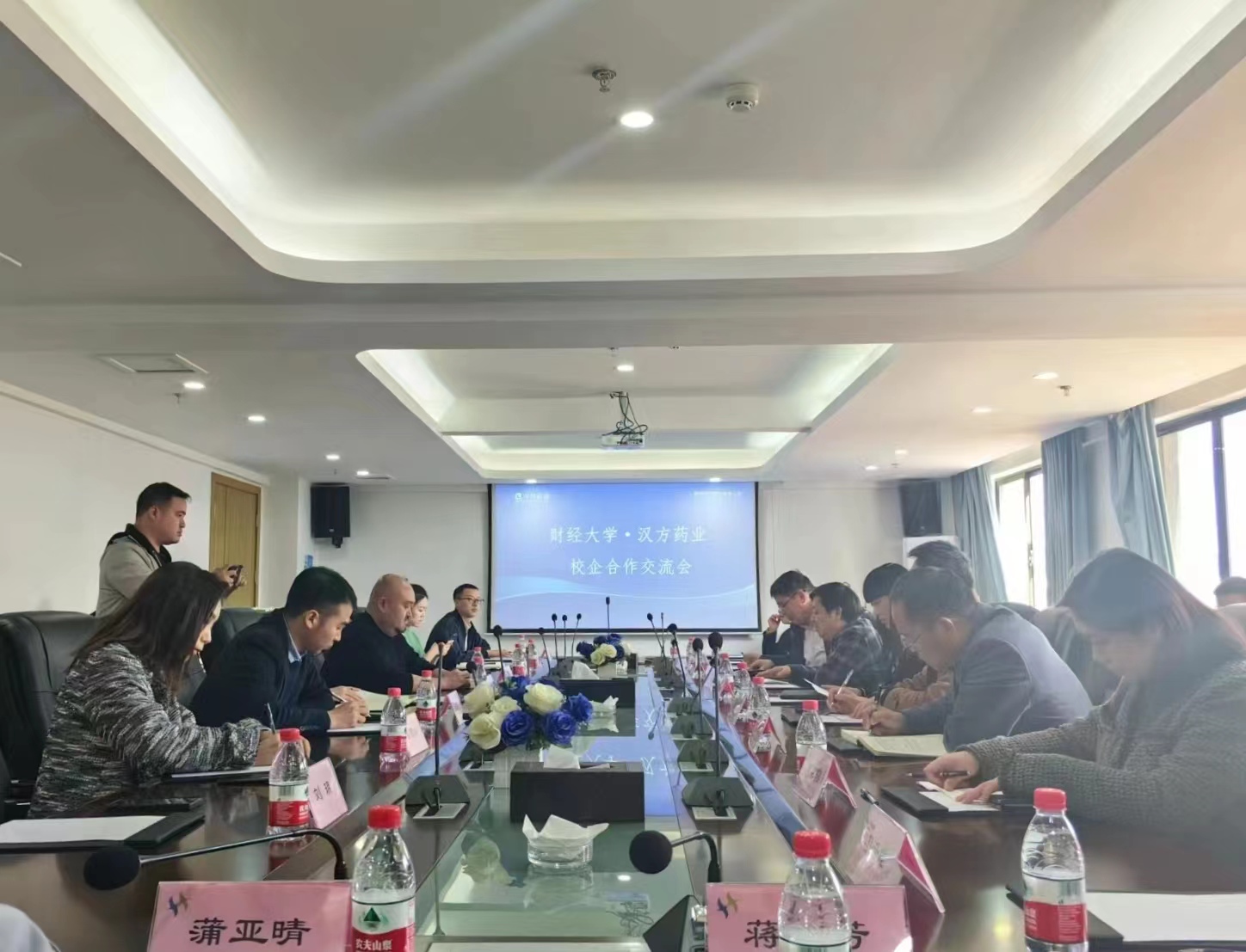 教学、学科及学生情况,黄忠莉副书记就推进2023届毕业生就业工作做了发言;汉方药业销售部、财务部、生产部、人事部负责人依次就企业简况、企业发展、人才需求与培养等方面进行了介绍;最后与会双方就合作内容进行了深入的探讨。