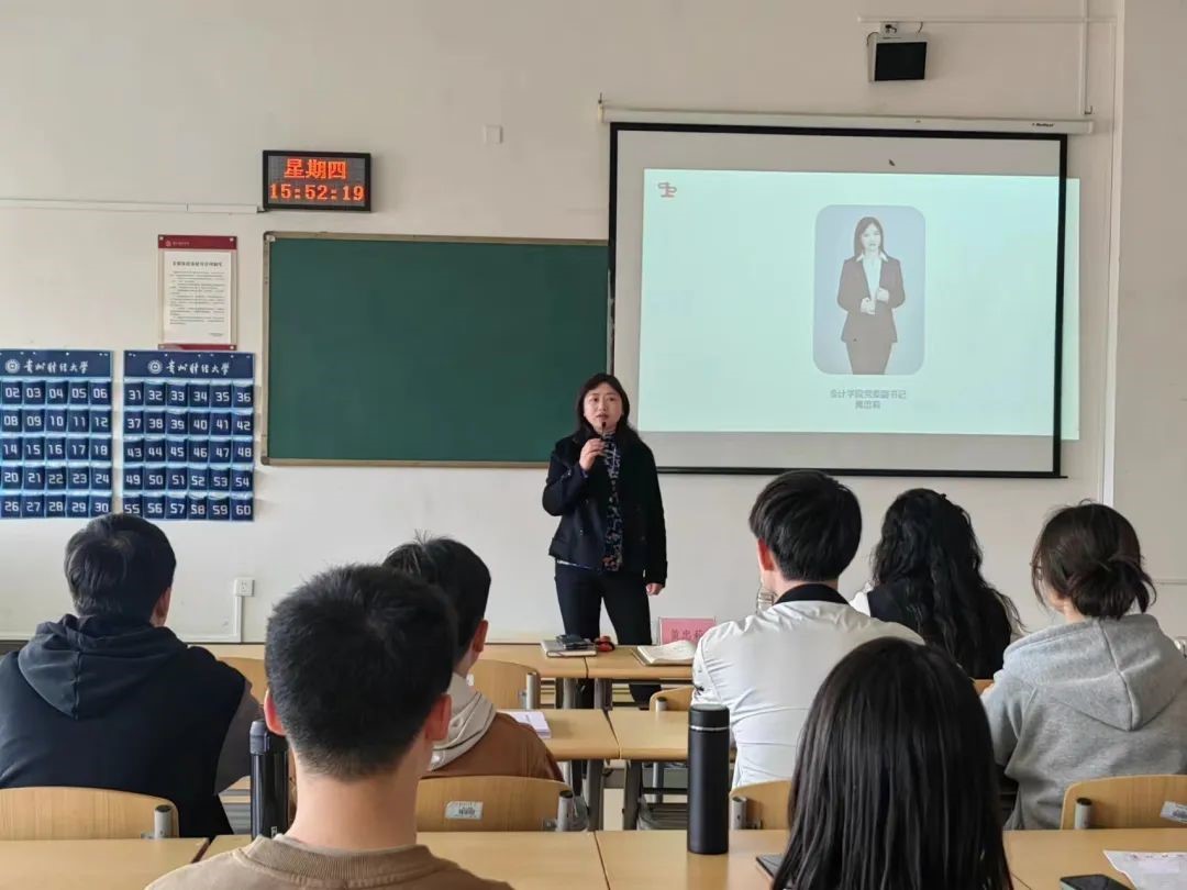 之后,联合会指导老师杨晓华对新学期的工作方向进行交流分享。她指出联合会的定位应该是学术型研会,联合会成员们需要始终保持对知识和学术研究的热情和渴望,精益求精,不断引领同学们追求更高水平的学术成绩;在工作中不怕困难,不惧挑战;同时要扛起学生干部应有的责任和担当。