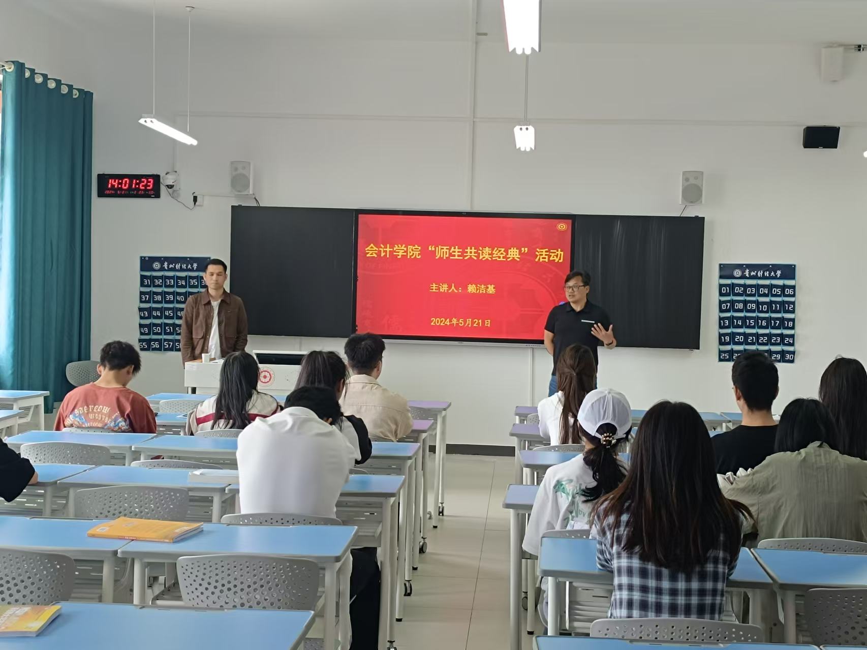 也为了促进本科生心中的学术种子萌芽生长,激发本科生考研深造的积极性,于2024年5月21日下午在文渊楼4-2举办了一场“师生共读经典”活动。