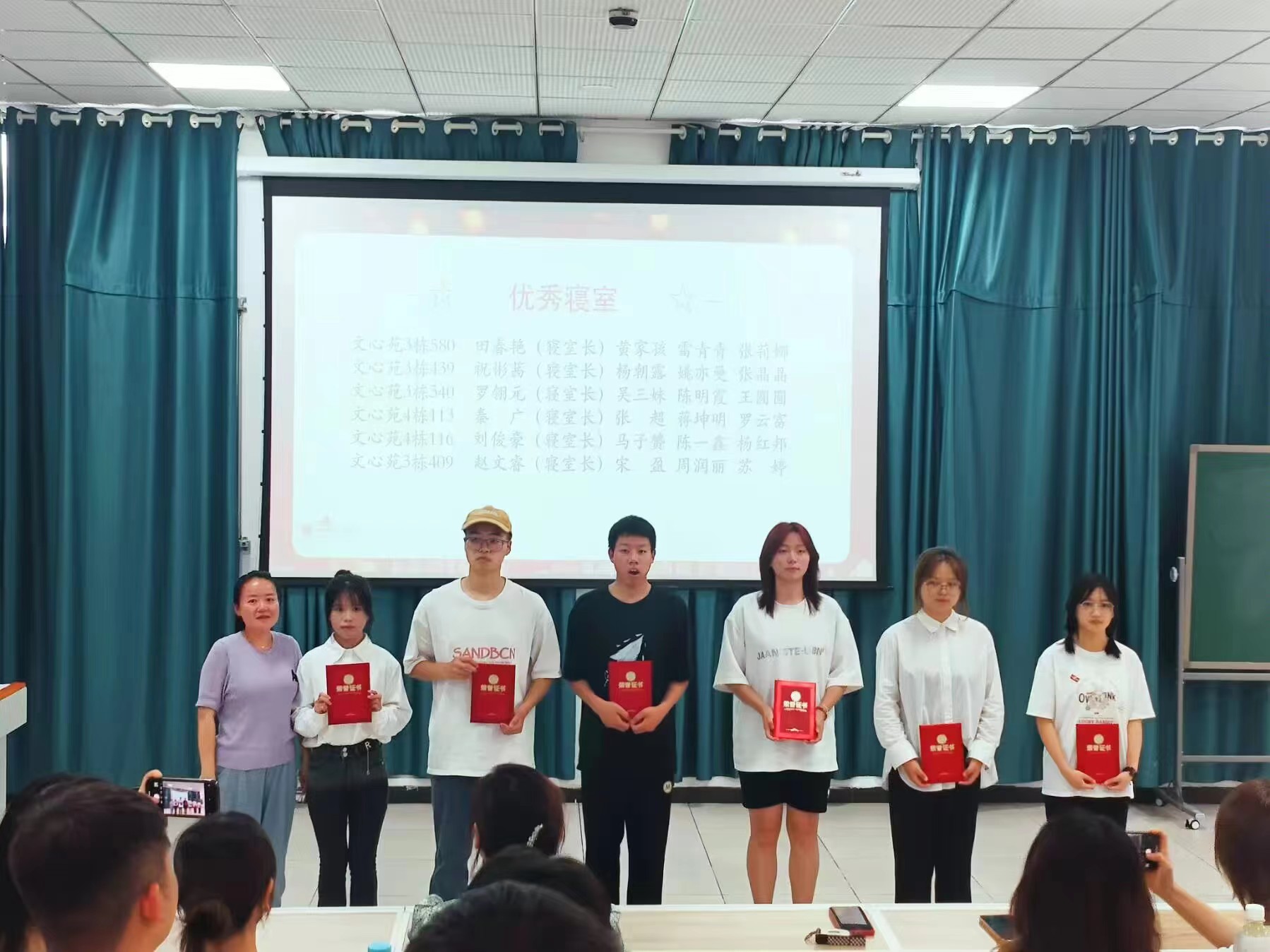 团委书记吴慧玲为“优秀寝室”颁发荣誉证书,表彰他们在卫生、纪律、学习氛围和团队合作等方面的卓越表现,激励更多寝室向他们看齐。优秀寝室代表田春艳的发言更是激发了在场同学积极向上、共创和谐社区的热情。