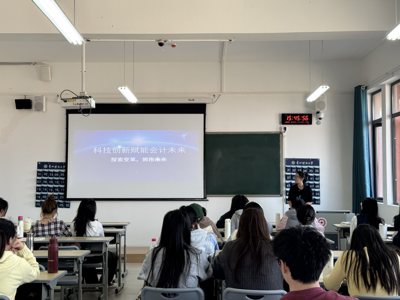辅导员屈仁英为2024级会计专硕3班同学开展了“科技创新赋能会计未来”的主题班会。