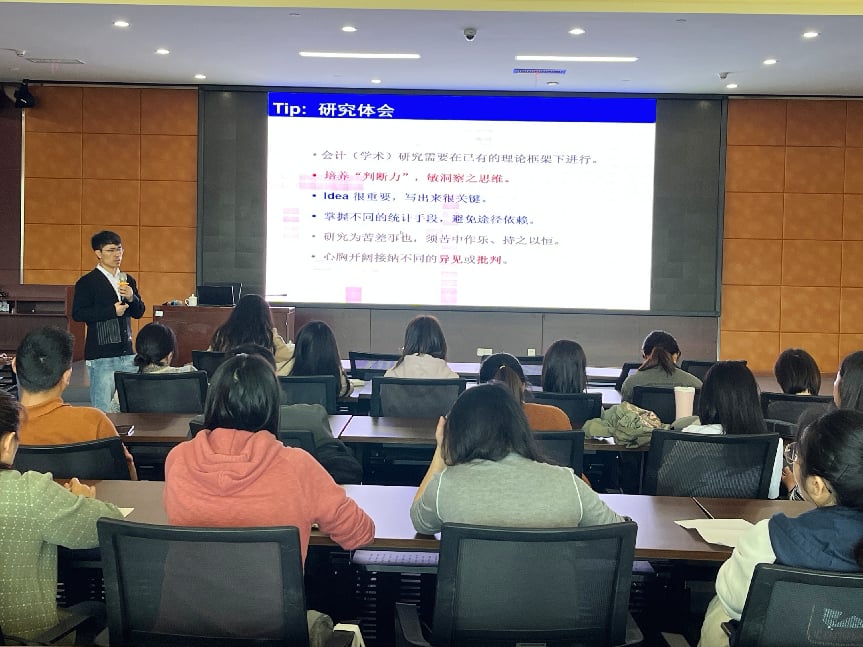 会计系党总支书记宋容健对讲座进行总结发言,对两位老师的精彩分享表达了衷心的感谢,同时希望以此次交流为契机,进一步加强校际教研互促、学术互通,推动教学改革与学术研究深度融合,共同提升教师专业发展水平。