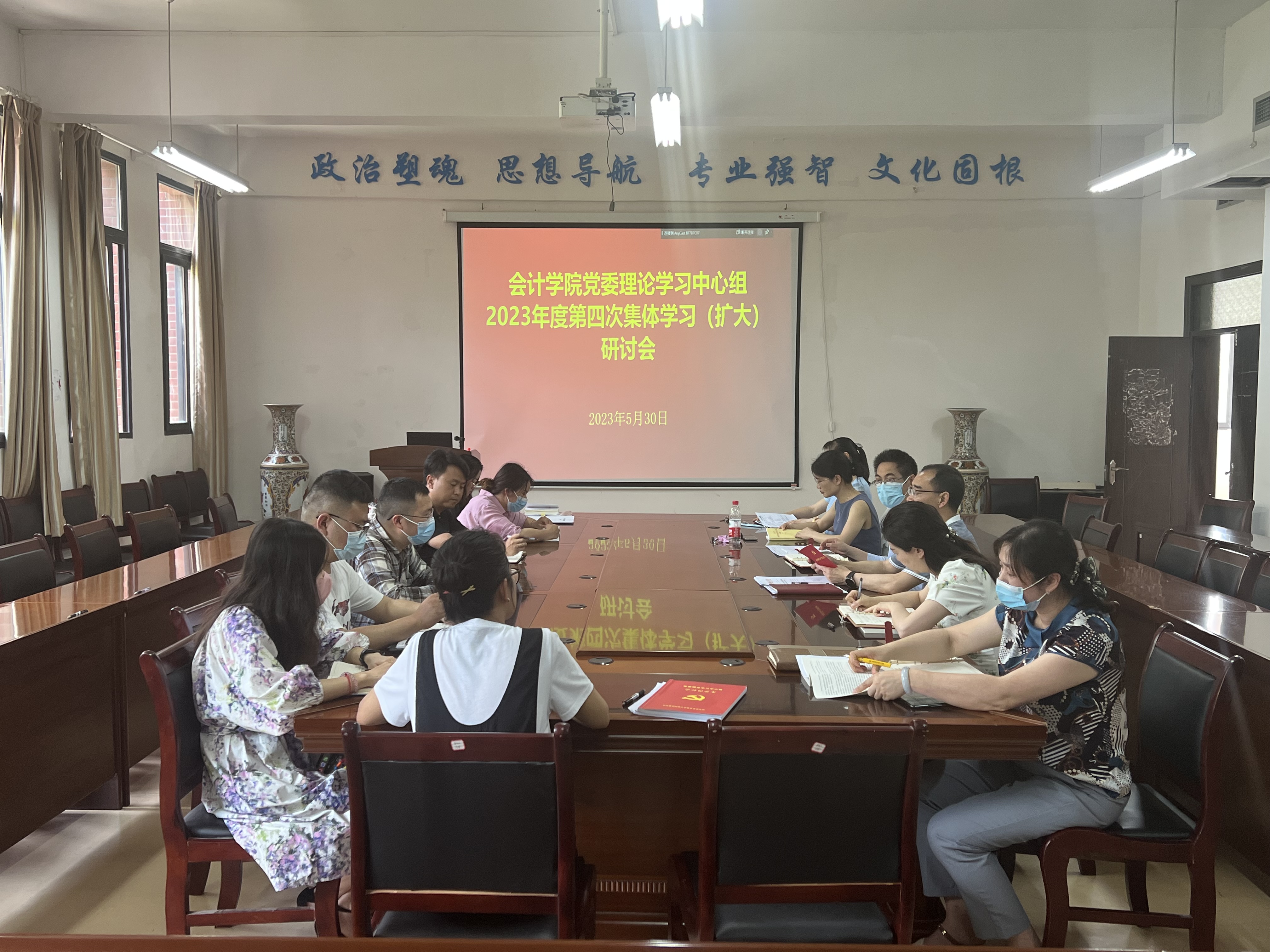 530日,hkjc下载中心 党委在崇德楼206会议室召开学习贯彻习近平新时代中国特色社会主义思想主题教育暨党委理论学习中心组2023年度第四次集体学习(扩大)研讨会。hkjc下载 党委班子成员、副科级以上干部及党支部书记参加会议,hkjc下载 党委书记聂永刚主持会议。