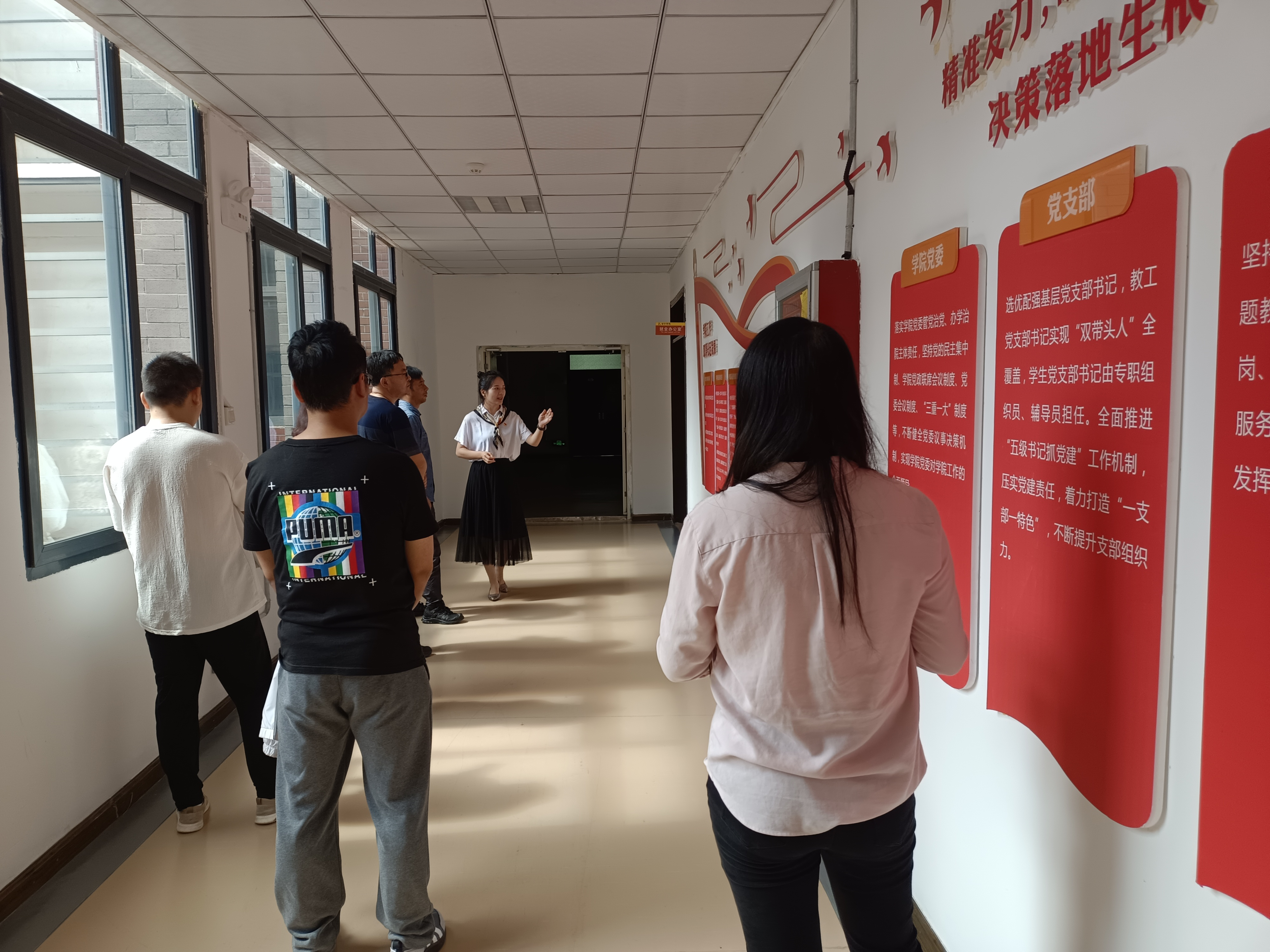 在hkjc下载中心 党委副书记黄忠莉、专职组织员曹斌的引导下,纪检干部们依次参观了hkjc下载中心 党建文化长廊、党建图书角、党员活动室、学生党建工作中心办公室等场所。