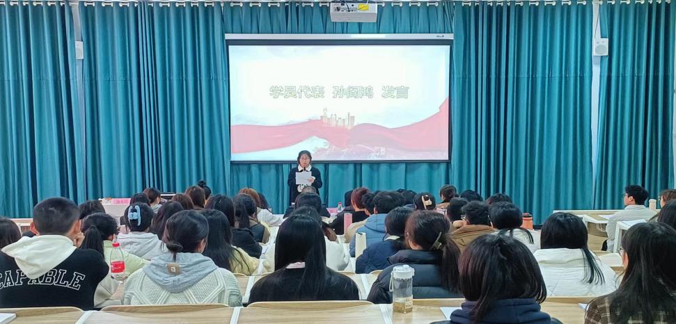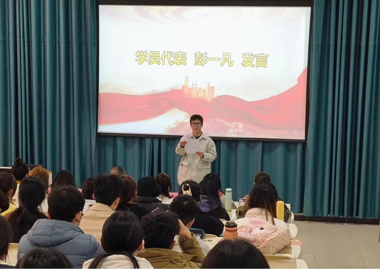 党校培训班管理办法》,要求全体学员参训期间务必严格遵守培训班管理规定。本科生学员代表孙阁鸿、研究生学员代表彭一凡分别发言,表示将严格要求自己,遵守培训纪律,以饱满的热情投入到学习中去,认真听讲,积极思考,勇于实践,在培训过程中学好党的理论知识、提升政治素养,用实际行动来努力朝党组织靠拢。