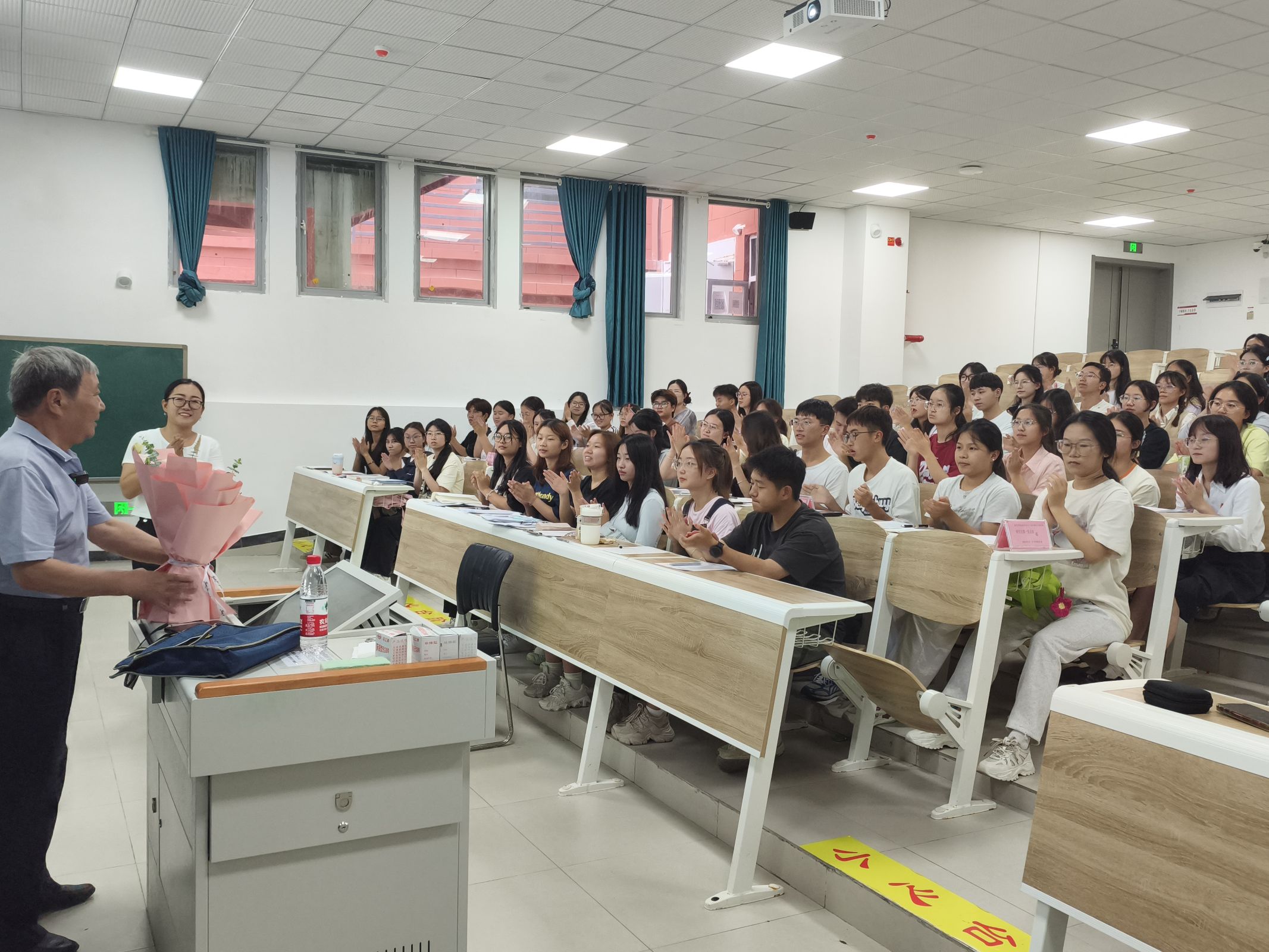 党课结束后,学员代表上台向秦立俊老师送上了鲜花,表达了对秦老师克服身体不适坚持为学生讲党课的感激之情,也向秦老师送上了教师节的感谢祝语。全体学员也与秦老师进行了合影留念。