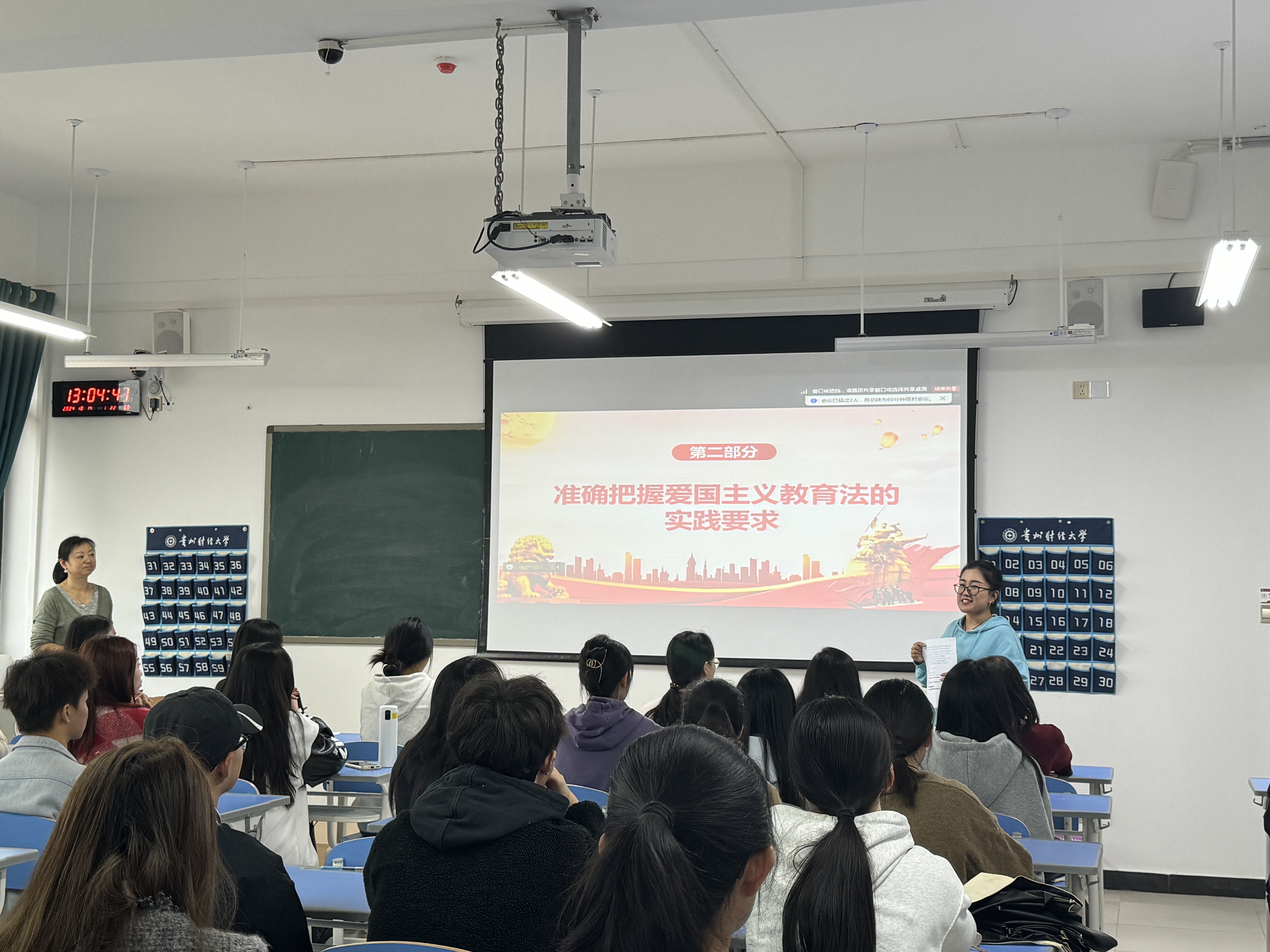 在宣讲活动中,邱静从《中华人民共和国爱国主义教育法》颁布实施的背景、主要内容、重大意义等方面展开讲解,强调青年学生要准确把握《中华人民共和国爱国主义教育法》主要内容,用实际行动践行《中华人民共和国爱国主义教育法》,传承和弘扬爱国主义精神。蒲亚晴从准确把握爱国主义教育法的实践要求、青年学生如何用实际行动推动爱国主义教育法落地落实等方面展开讲解。