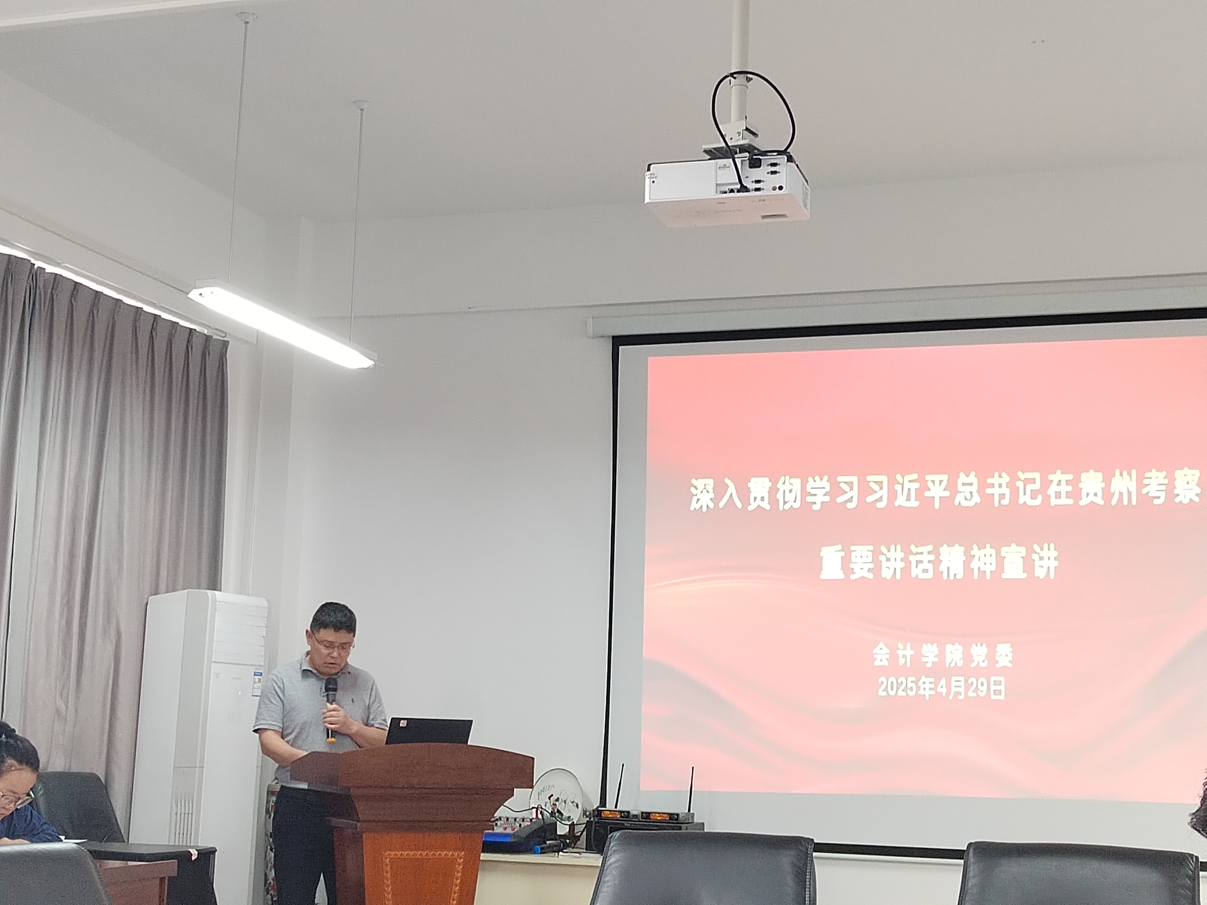 党委书记王志亮在文渊楼505会议室面向全体教职工,开展了主题为“深入学习贯彻习近平总书记在贵州考察时的重要讲话精神”的专题宣讲活动。
