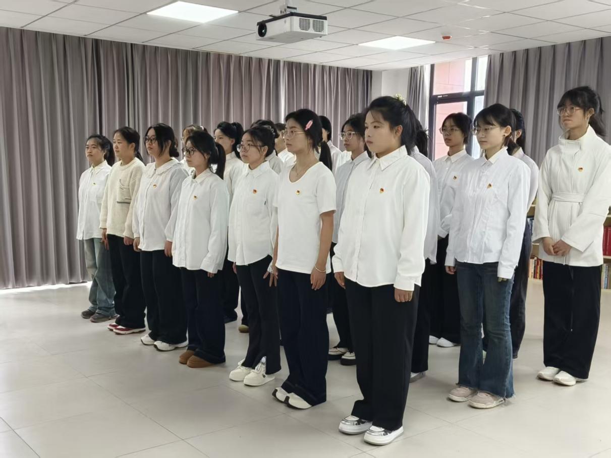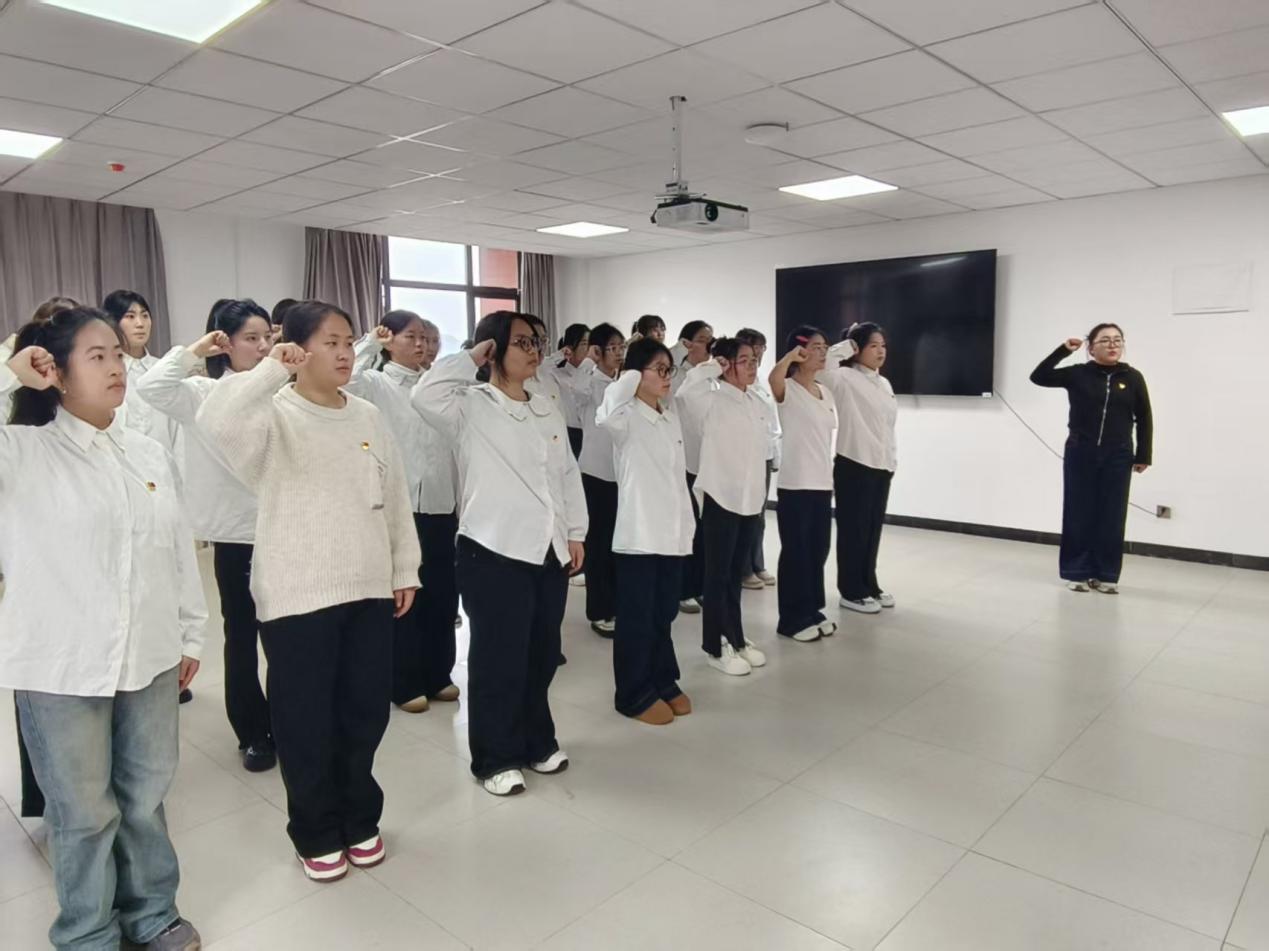 在文渊楼606党员活动室举行新党员集体入党宣誓仪式。仪式上,23名新党员身着整洁服装,庄严地举起右拳,目光坚定地凝视党旗,在专职组织员蒲亚晴的领誓下庄严宣誓:“我志愿加入中国共产党,拥护党的纲领,遵守党的章程,履行党员义务,执行党的决定,严守党的纪律,保守党的秘密,对党忠诚,积极工作,为共产主义奋斗终身,随时准备为党和人民牺牲一切,永不叛党。” 誓言铿锵有力、掷地有声,回荡在活动室的每一个角落,充分展现了新党员对党的无限忠诚和为共产主义事业矢志奋斗的坚定信念。