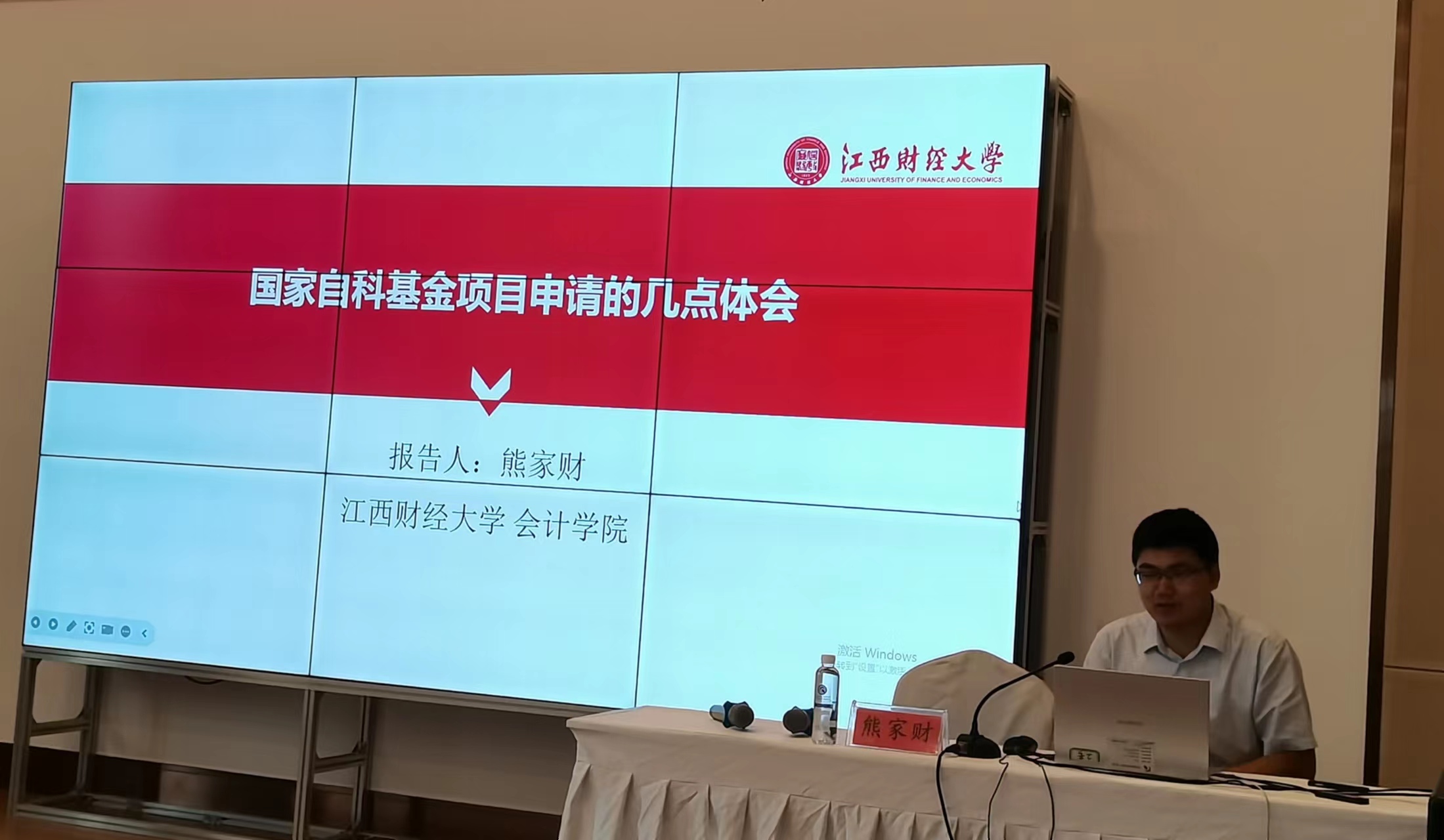 的熊家财教授作了《国家自科基金项目申请》的讲座。他结合自身丰富的项目申请经验,对研究话题选取、选题深入挖掘等方面进行了具体的指导。他还对不同项目申请书的研究框架进行分类,并剖析在结构布局和标题凝练上常犯的错误。最后,熊家财教授还就参会师生在开展项目申请、学术研究中遇到的问题进行了针对性的解答,并提出了可行的解决措施。