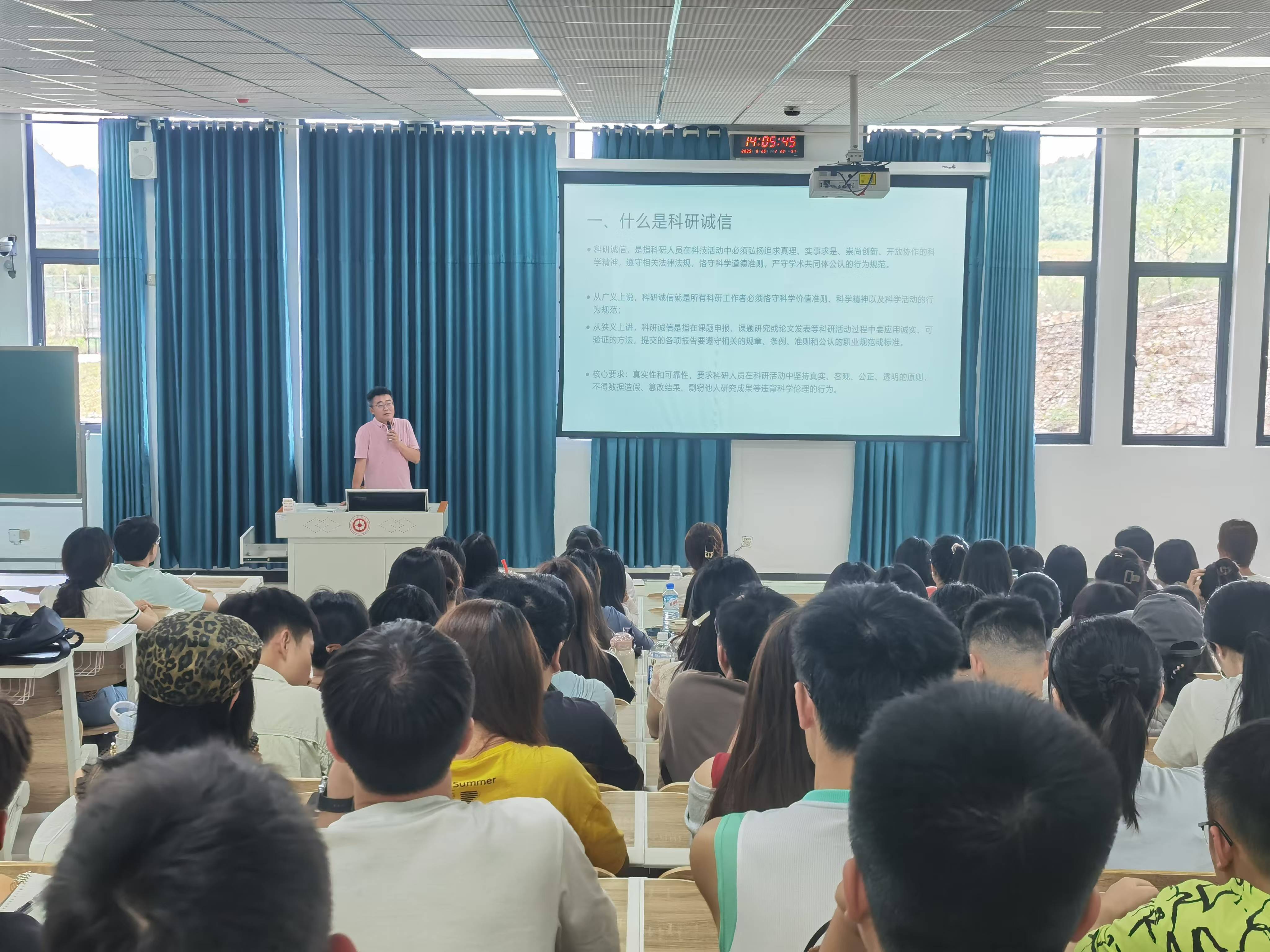 随后四天,系列专题讲座在文雅阶教2-1有序开展。8月26日,科研处李天柱教授以《学术科研入门指导》为题,从科研思维培养、研究方法选择、学术规范遵守等方面展开讲解,为新生搭建起学术科研的入门框架;8月27日,辅导员谢云聚焦《新生安全教育》,围绕校园安全、财产安全、网络安全等关键领域,结合真实案例普及安全知识,引导新生提高安全防范意识;8月28日,研究生院韩敏霞副院长深入解读研究生规章制度,从培养方案、学术要求、奖助体系等方面细致讲解,帮助新生明晰学业规划与行为准则;8月29日,校心理健康教育中心贺旭英老师带来《研究生心理健康教育》讲座,通过心理知识科普与情绪调节方法指导,助力新生构建积极健康的心理状态。