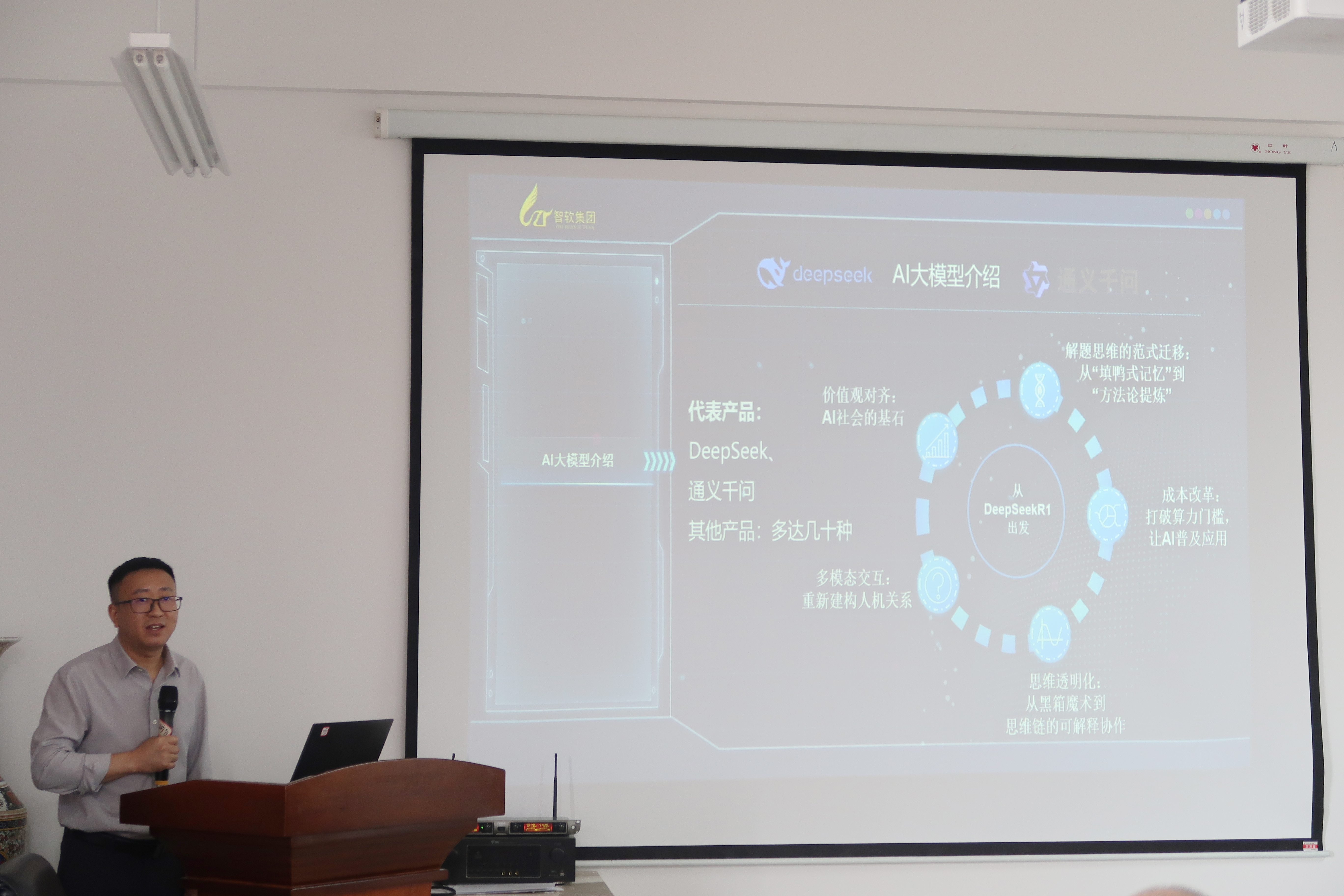 贵州智软科技(集团)有限公司总经理何自成作《AI大模型在实际场景中的应用》主题分享。何总经理首先对AI大模型进行介绍,并以近期的产品代表DeepSeek作为例子详细阐述AI大模型的具体应用,其中包括AI大模型在企业管理和财会审专业教学教研中的应用。何总经理指出,AI大模型可以通过一体化培训平台进行一站式人才培养,高效提升教学效率;且AI在财会审领域的研究前景广阔,需要师资队伍与校企更加深度合作。