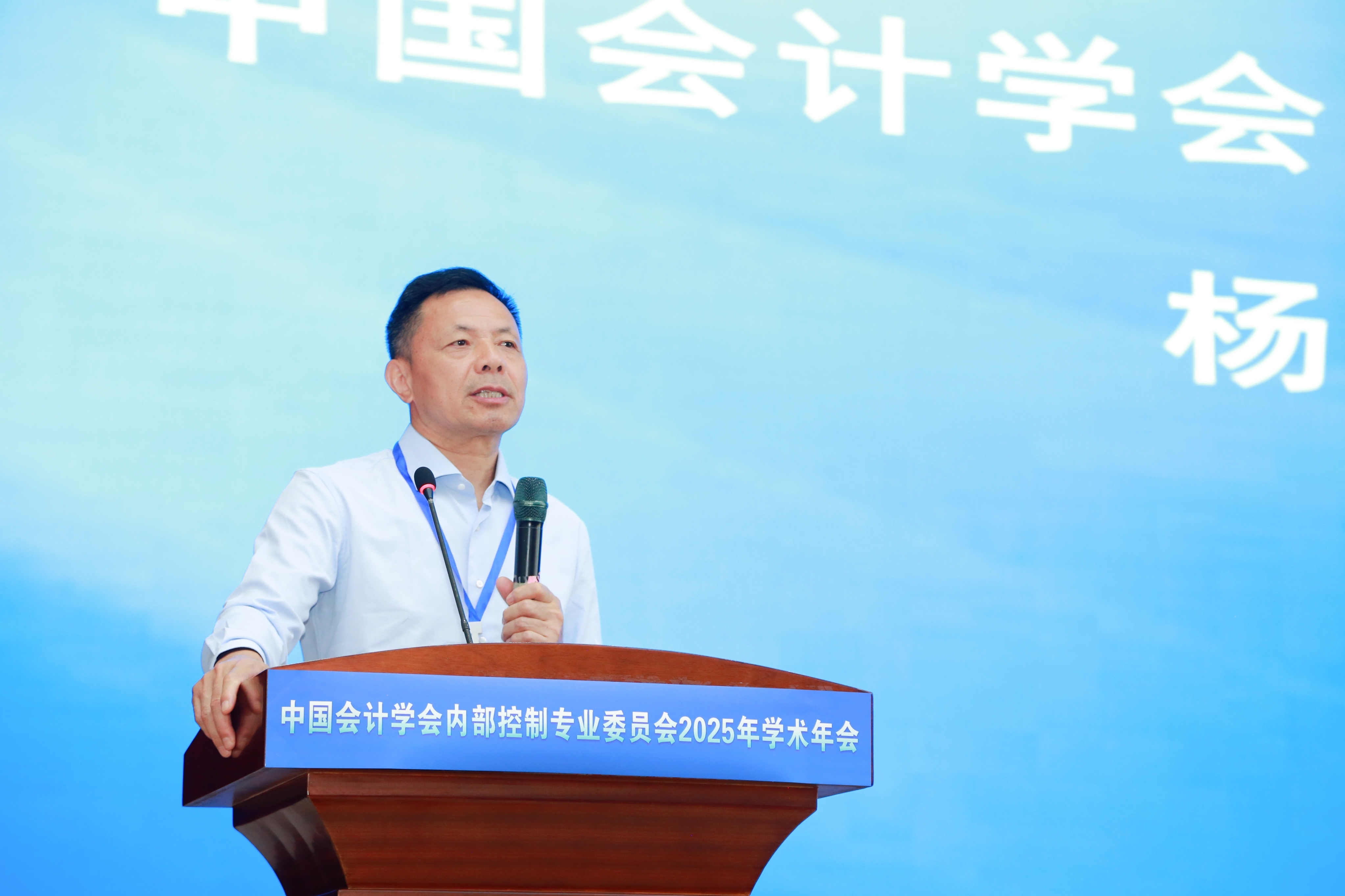 杨雄胜教授致辞,充分表达了对主办方努力搭建学术交流平台的感谢,以及对同行们在专业领域付出努力与贡献的肯定。指出今年学术年会聚焦“内部控制”主题,意义重大。强调在信息化时代背景下,内控必须与时俱进,探索新模式与框架。希望内部控制专业委员会的同仁们共同努力,肩负起时代赋予的历史使命,既要传承中华文化精髓,又要积极创新,构建具有国际影响力、符合人类文明价值的内控体系。
