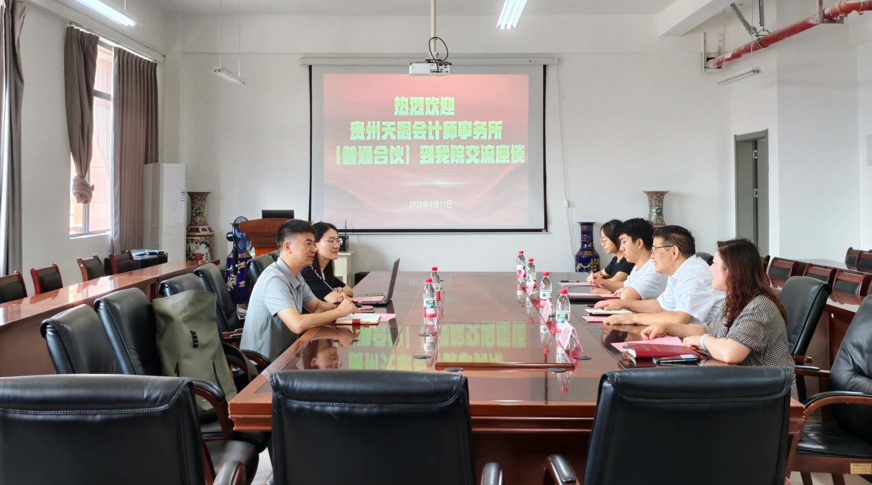 2025年9月11日上午10:00,贵州天眼会计师事务所(普通合伙)负责人叶文勇一行到访hkjc下载中心 ,开展访企拓岗合作交流暨招聘活动,hkjc下载中心 党委书记王志亮、副书记黄忠莉、学科建设管理科副科长齐超、2026届毕业生辅导员易洁出席活动。