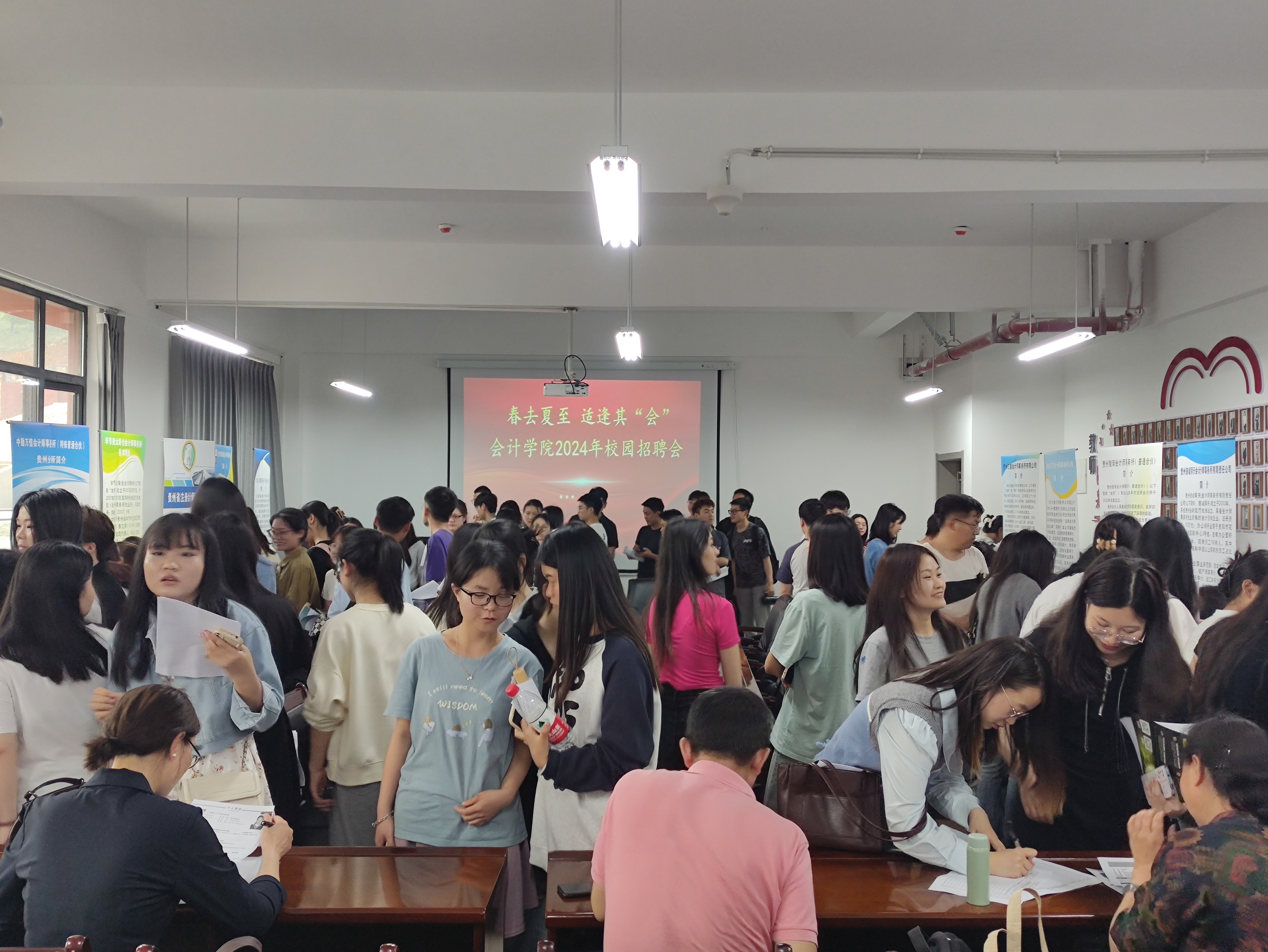 宣讲后,参会的40余家机构代表在文渊楼505、文澜楼1楼大厅分别举行现场招聘会,为不同专业背景和学历层次的毕业生提供了多样化、高质量的就业选择,全力促进2024届毕业生“好就业”“就好业”。