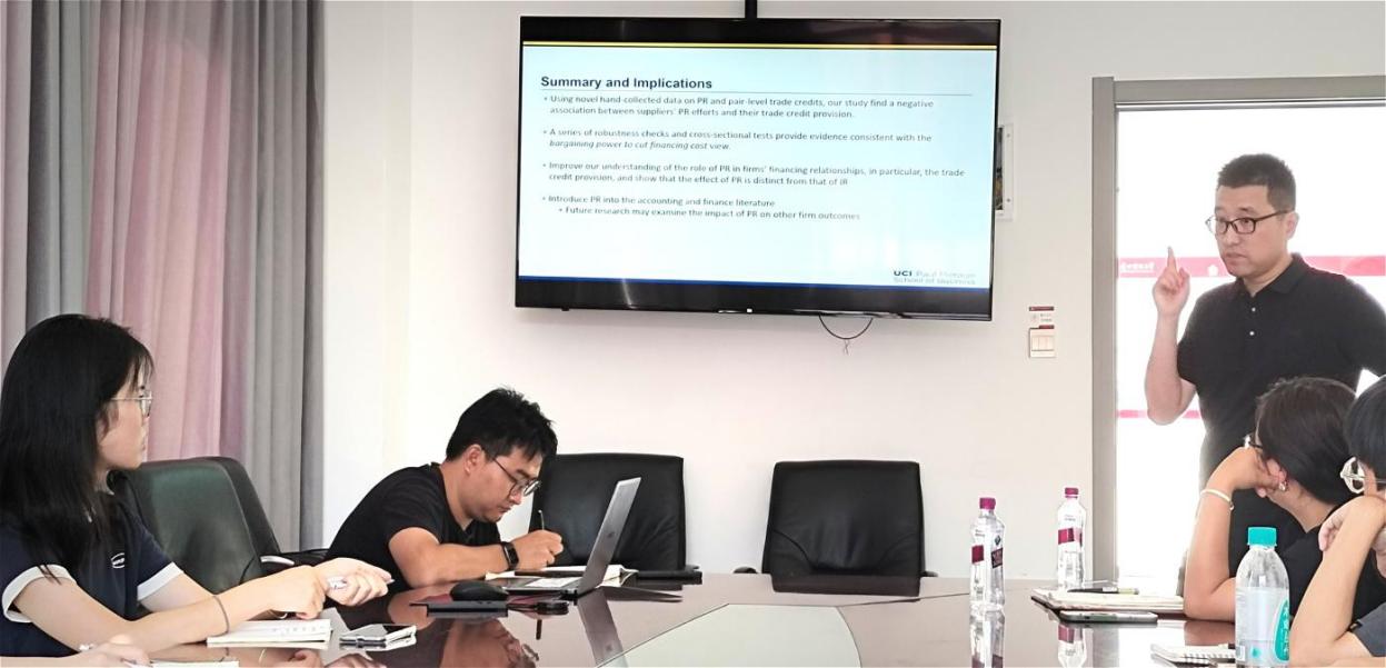 2024年8月25日,华中科技大学管理hkjc下载 计算金融系助理教授施汉忠博士应邀为hkjc下载中心 开展题为“Public Relations Efforts and Trade Credit Provision”的学术讲座。本次讲座由hkjc下载中心 会计系副主任罗毅博士主持,hkjc下载中心 部分教师、研究生、本科生代表参加讲座。