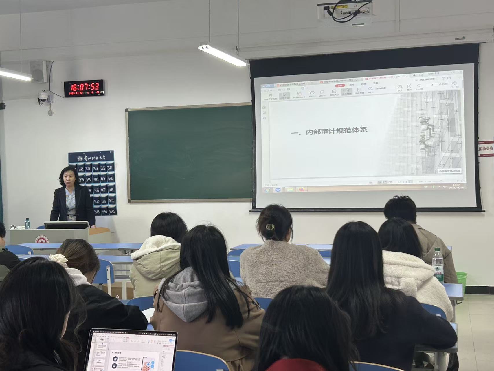 整场讲座内容系统、逻辑清晰,既有理论高度,又紧密贴合实务需求,不仅为学生搭建起内部审计法规的知识框架,也深化了师生对审计法治化、规范化的理解。讲座有效拓展了学生师生的专业视野,强化了法治意识与职业判断能力,拓宽了专业课程建设视野,为其学生未来从事审计相关工作、参与企业治理实践奠定了扎实的法规基础与思维准备。