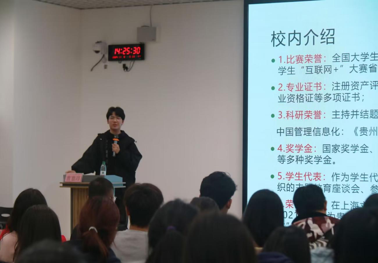 活动伊始,曹禀淳进行经验分享。他强调同学们要确定自己未来的方向,依据目标倒推,规划大学期间的努力方向。他建议同学们在大学期间要积极参与学生工作,锻炼组织协调能力、沟通能力和执行能力;注重拓展自身技能的广度和深度,提升适应变化的能力;有针对性地提升专业技能和知识水平,积累相关领域的实践经验。