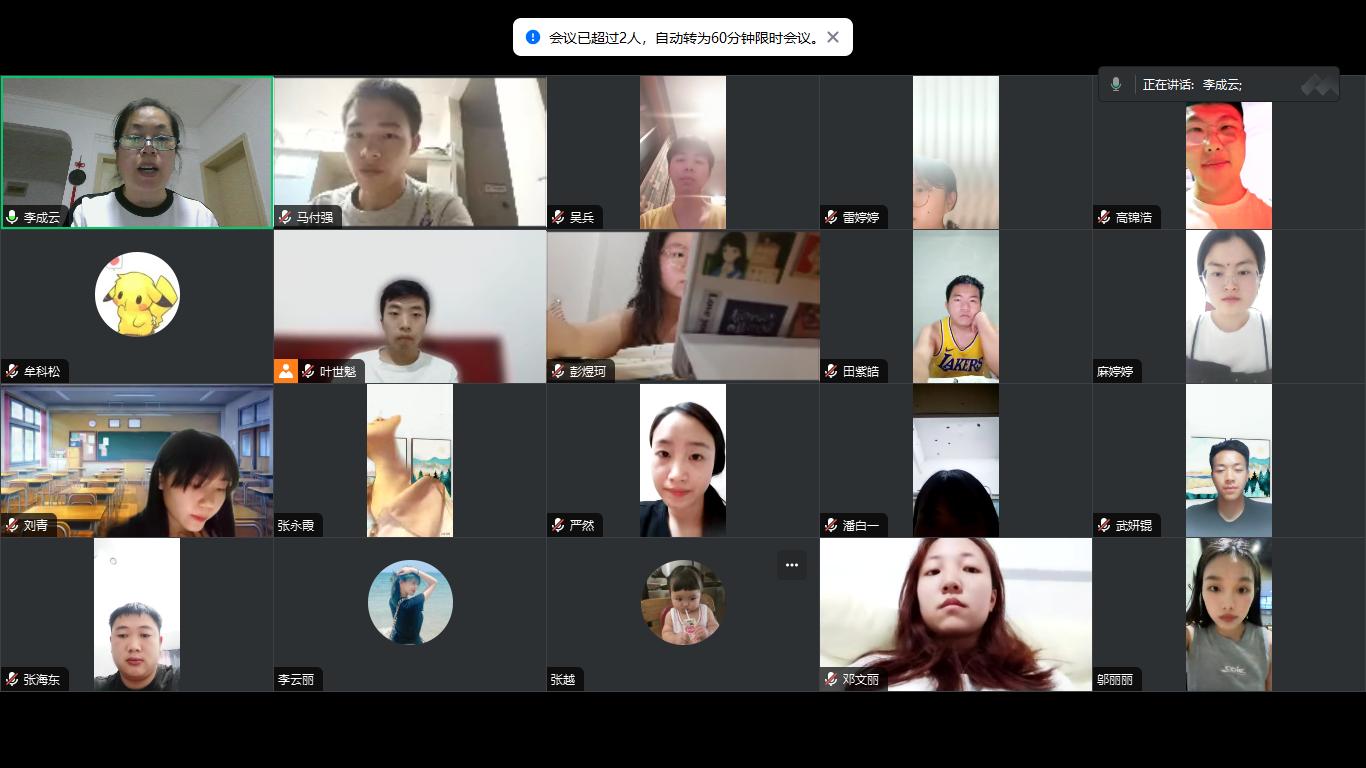 李成云老师通过腾讯会议开展暑期专业实习线上巡查。