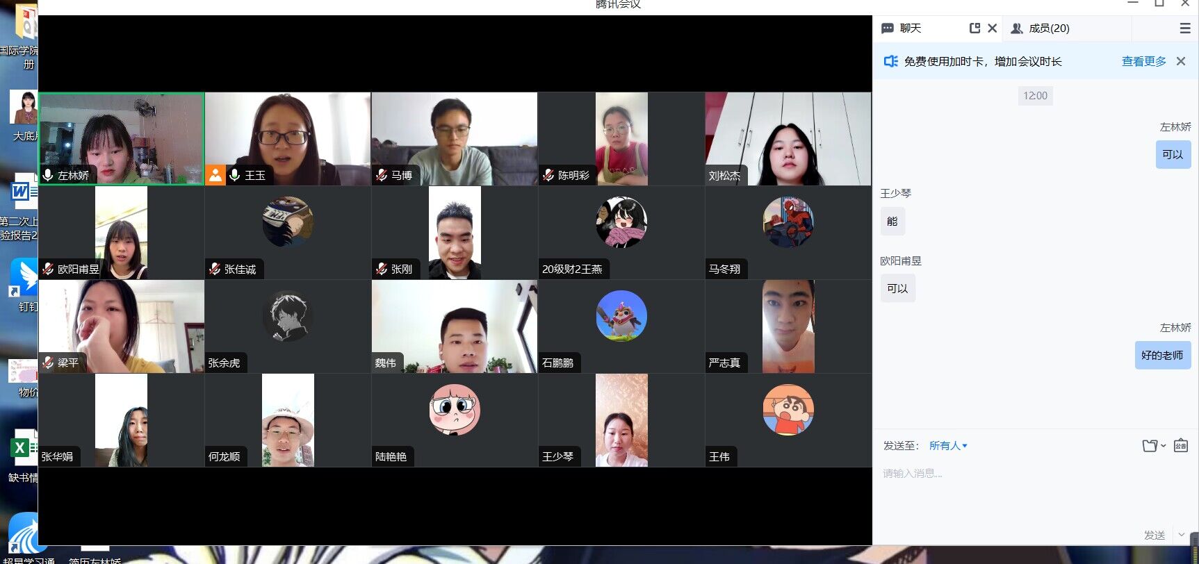 2020 级会计专业学生实习情况,财务管理系王玉老师通过腾讯会议开展了暑期专业实习线上教学巡查。
