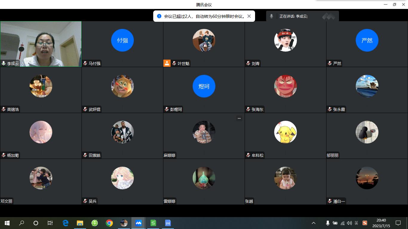 7月15日晚上,hkjc下载中心 李成云老师通过腾讯会议开展暑期专业实习线上巡查。