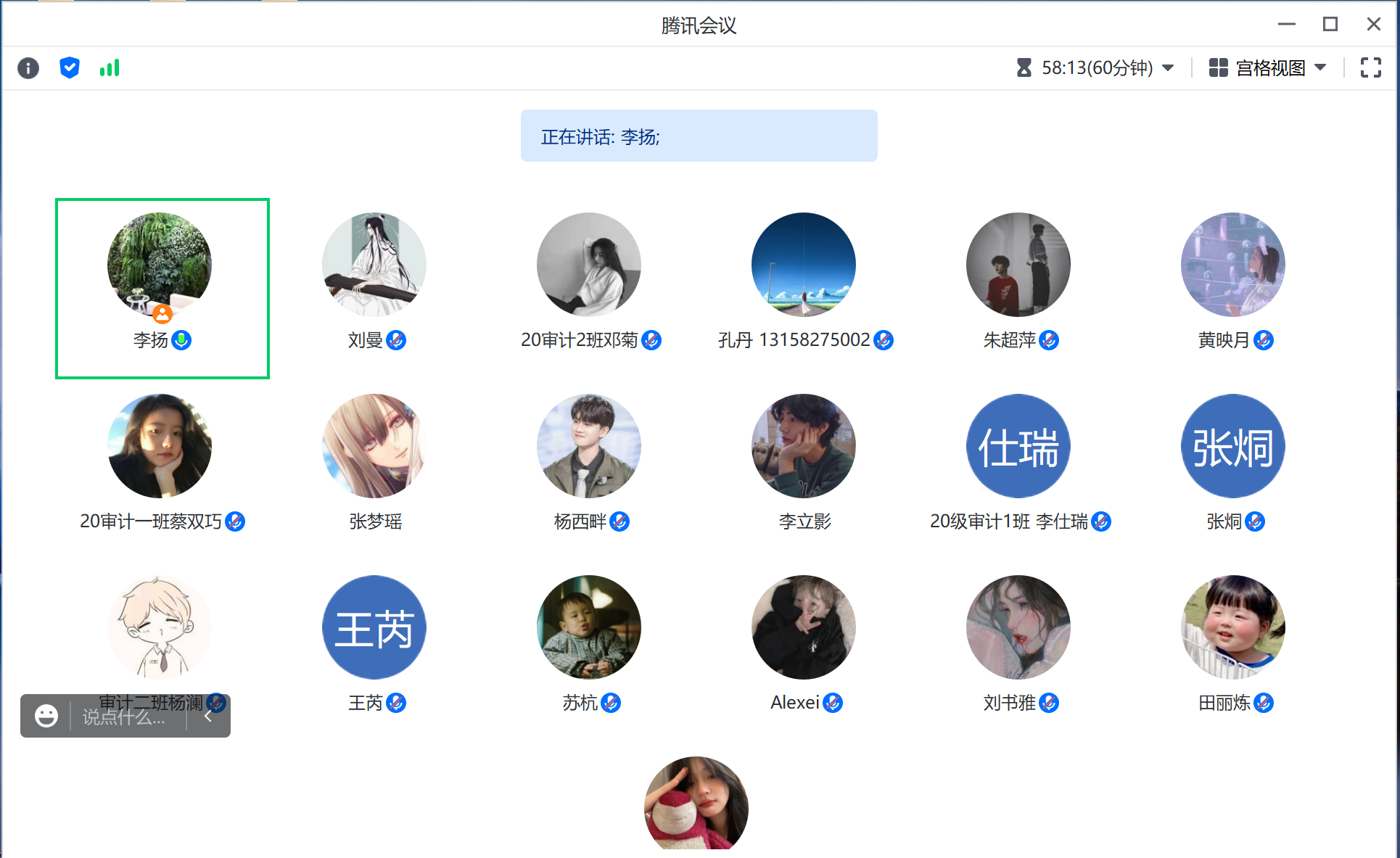7月15日下午,审计系李扬老师通过腾讯会议开展了暑期专业实习第二周的线上教学巡查。