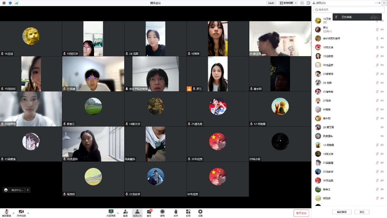 2023 年 7 月 14 日,审计系刘俊萍老师通过腾讯会议开展了暑期实习线上教学巡查。