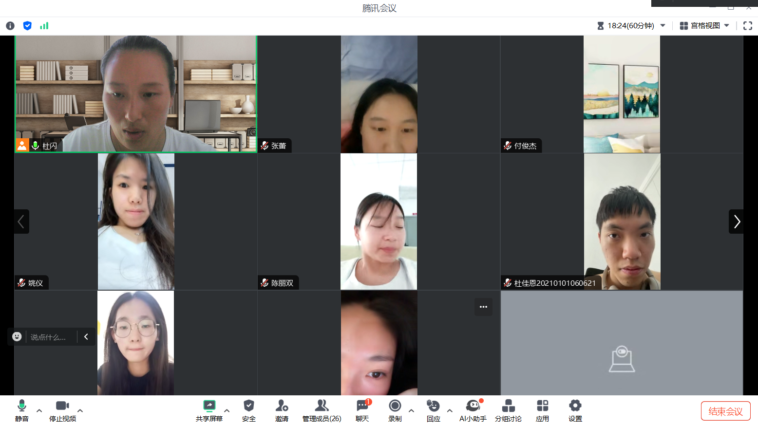 2024年7月22日,杜闪对所指导的学生(集中实习和自主实习)进行第四周实习指导,会议应到学生25人,实到25人。因所指导学生均被分配到贵州省不同的项目点,无法实现当面指导,所以采取腾讯视频会议的形式进行。
