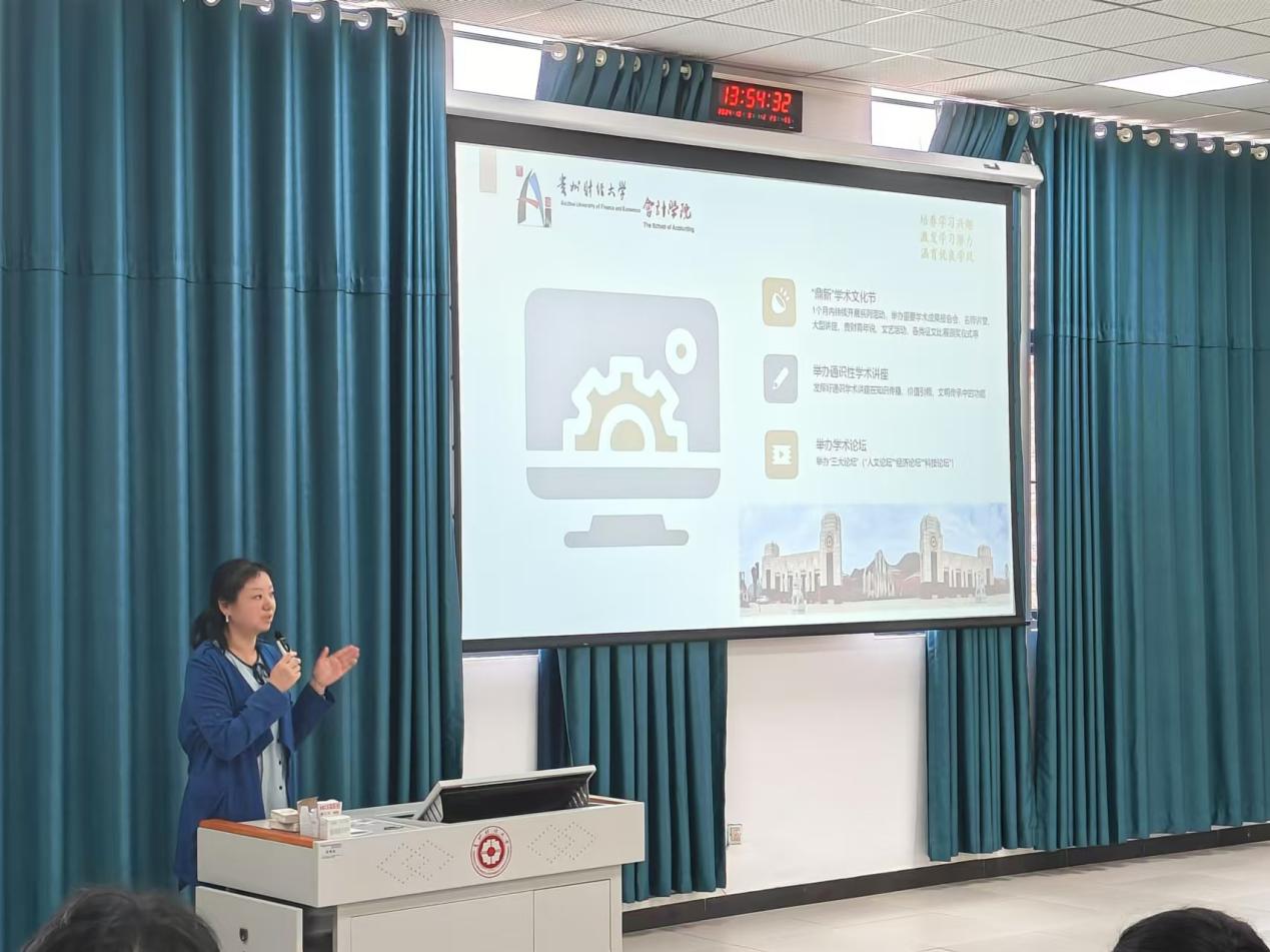 邱静从学术立校、学业提升等方面展开详细陈述。她希望同学们能够多参加学校举办的各类学术讲座,注重培养自己的学术能力,制定明确的学习计划,为学业提升打好基础。