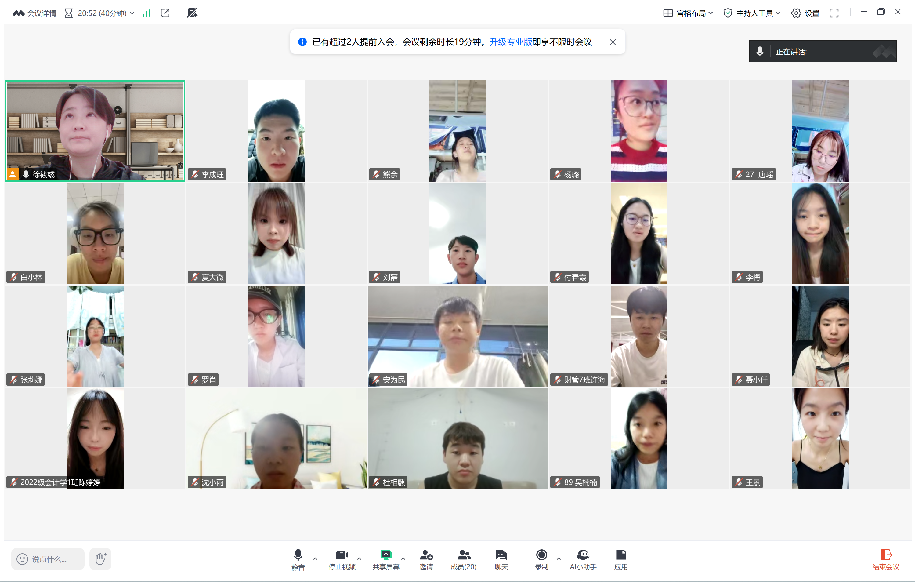 7月11日下午,会计系徐筱彧老师通过腾讯会议开展暑期专业实习线上教学巡查。