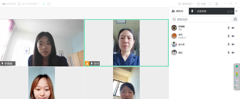 组织召开2022级会计专业学生集中实习线上安全简报会,实习指导教师李丹主持会议,安小芳、罗德胸、周乐等全体实习生线上参会。